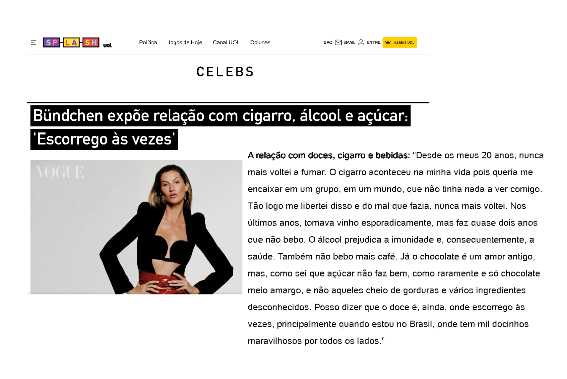 Veja só estas aspas de Gisele numa matéria do site Splash, do Uol: